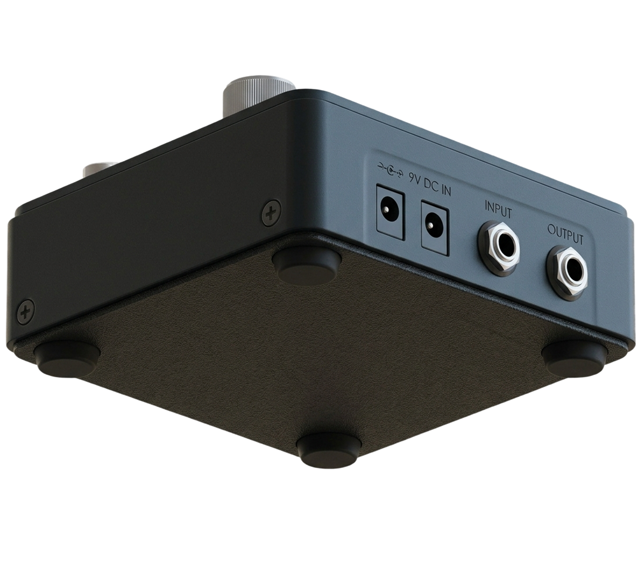 The single select knob navigates and loads presets. The display shows what is active. Three switches toggle effects on or off. That is the entire interface on the floor, by design.