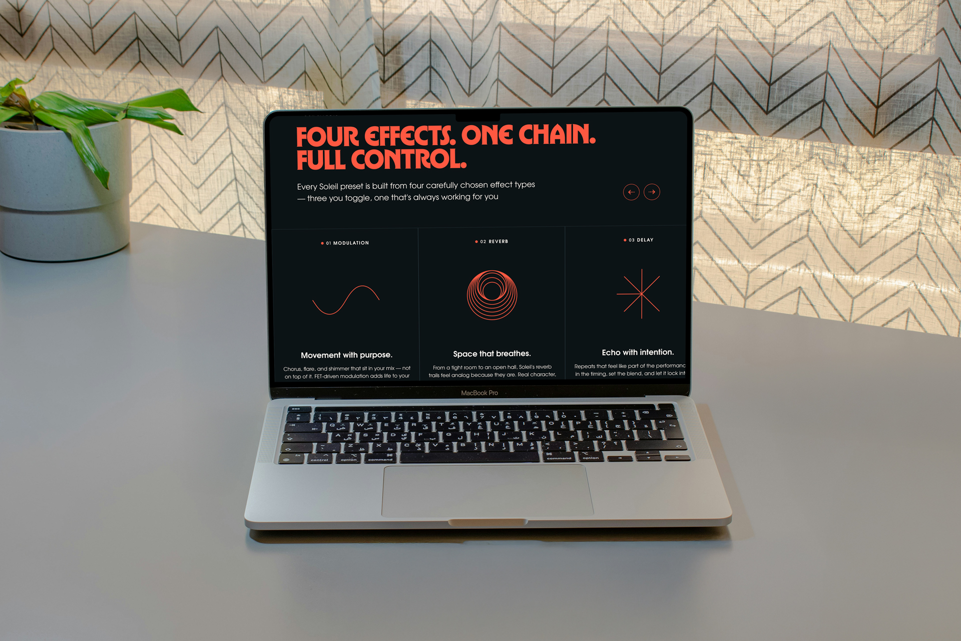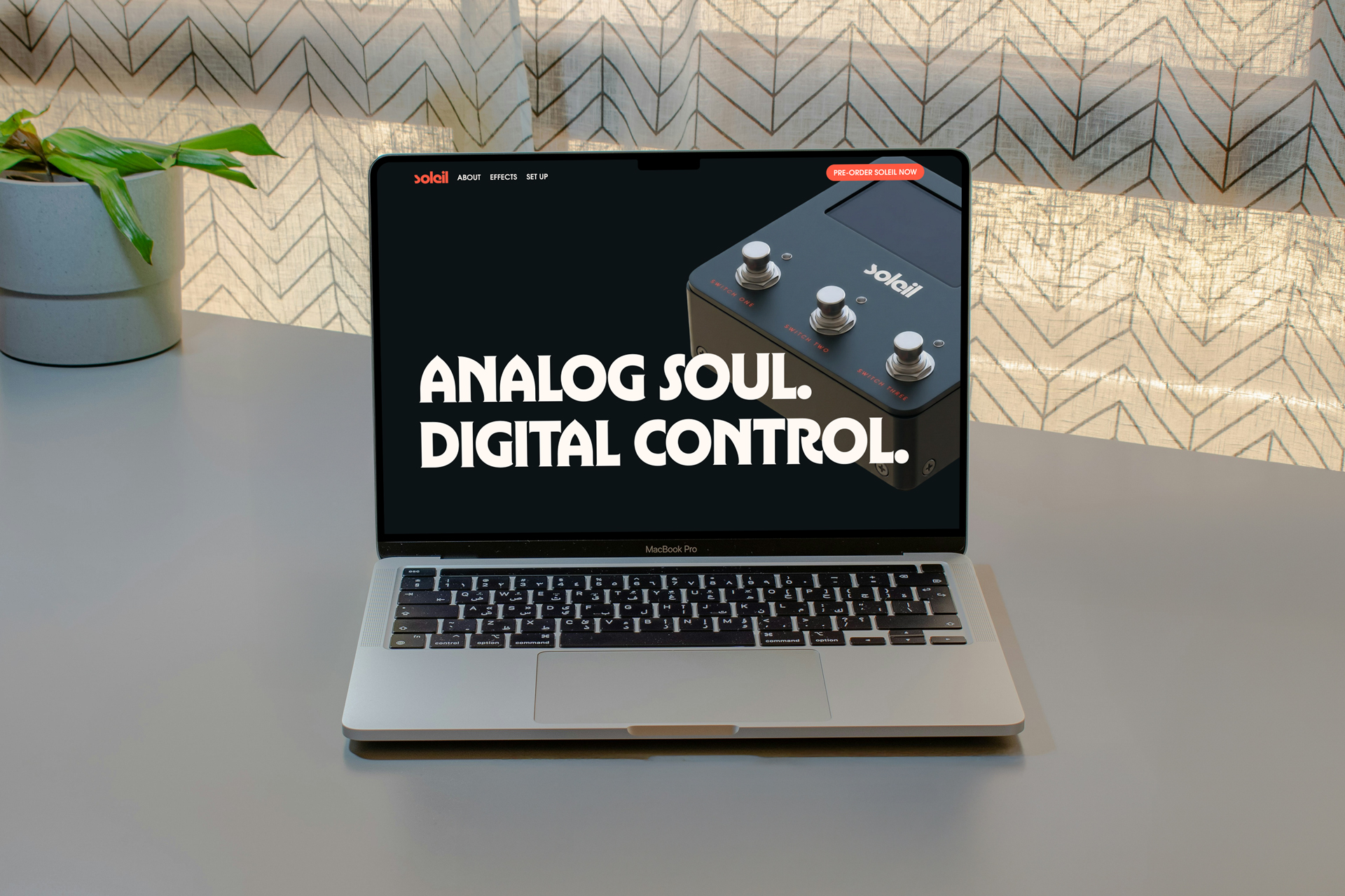 Soleil is a small chain DSP pedal built for players who already have their sound dialed in. Four FET-driven effects, one compact unit, and a preset system built on mobile. The work covers brand identity, hardware design direction, icon system, and web design.
